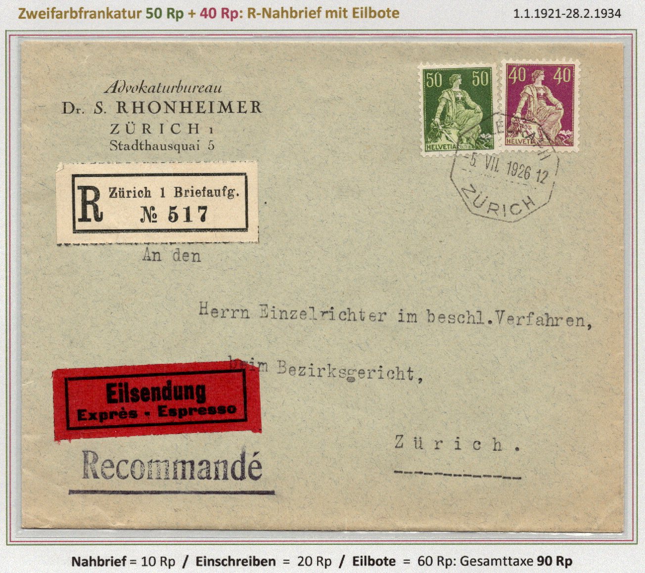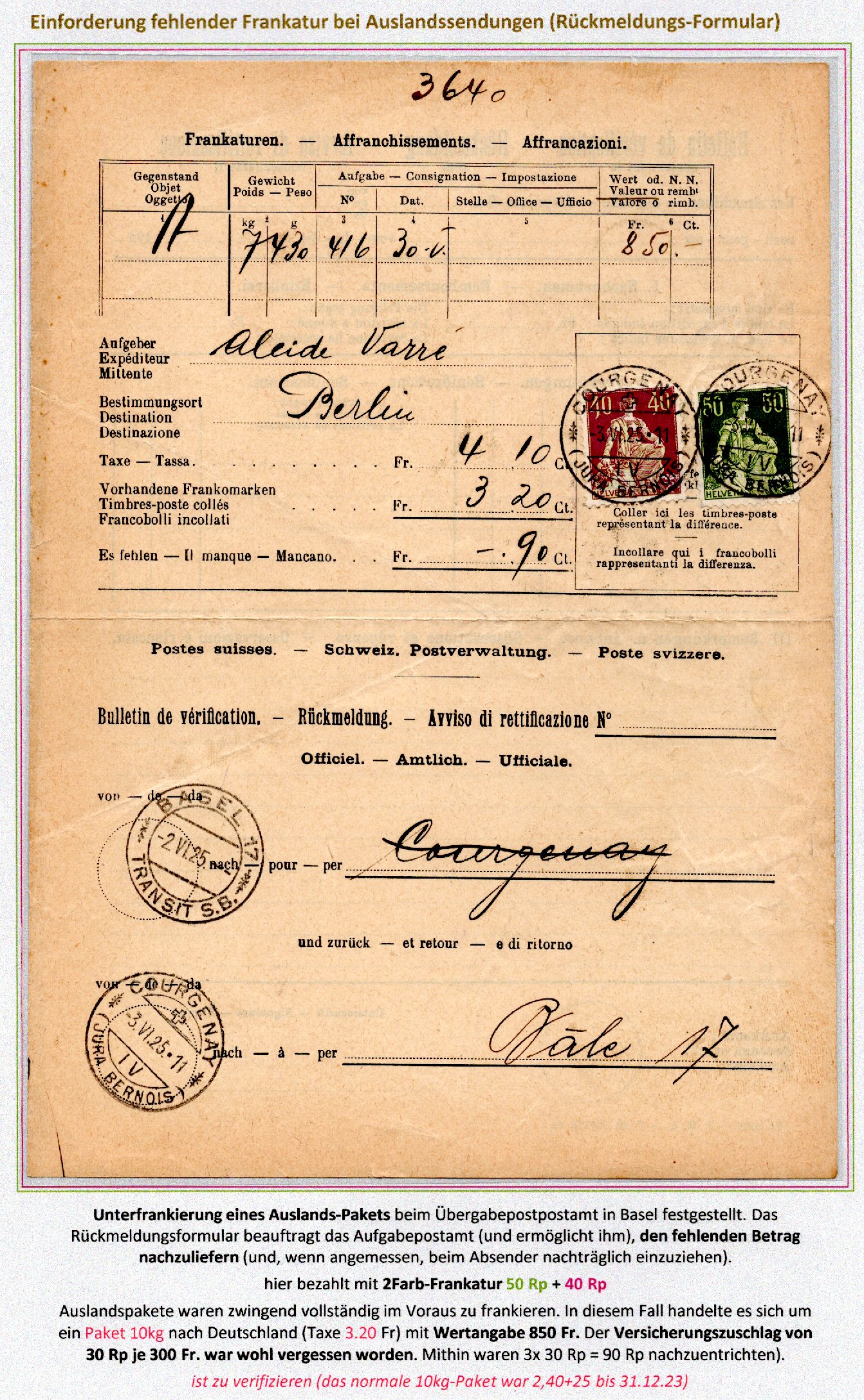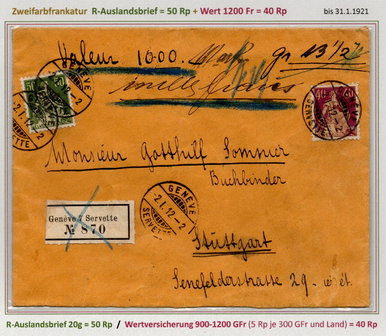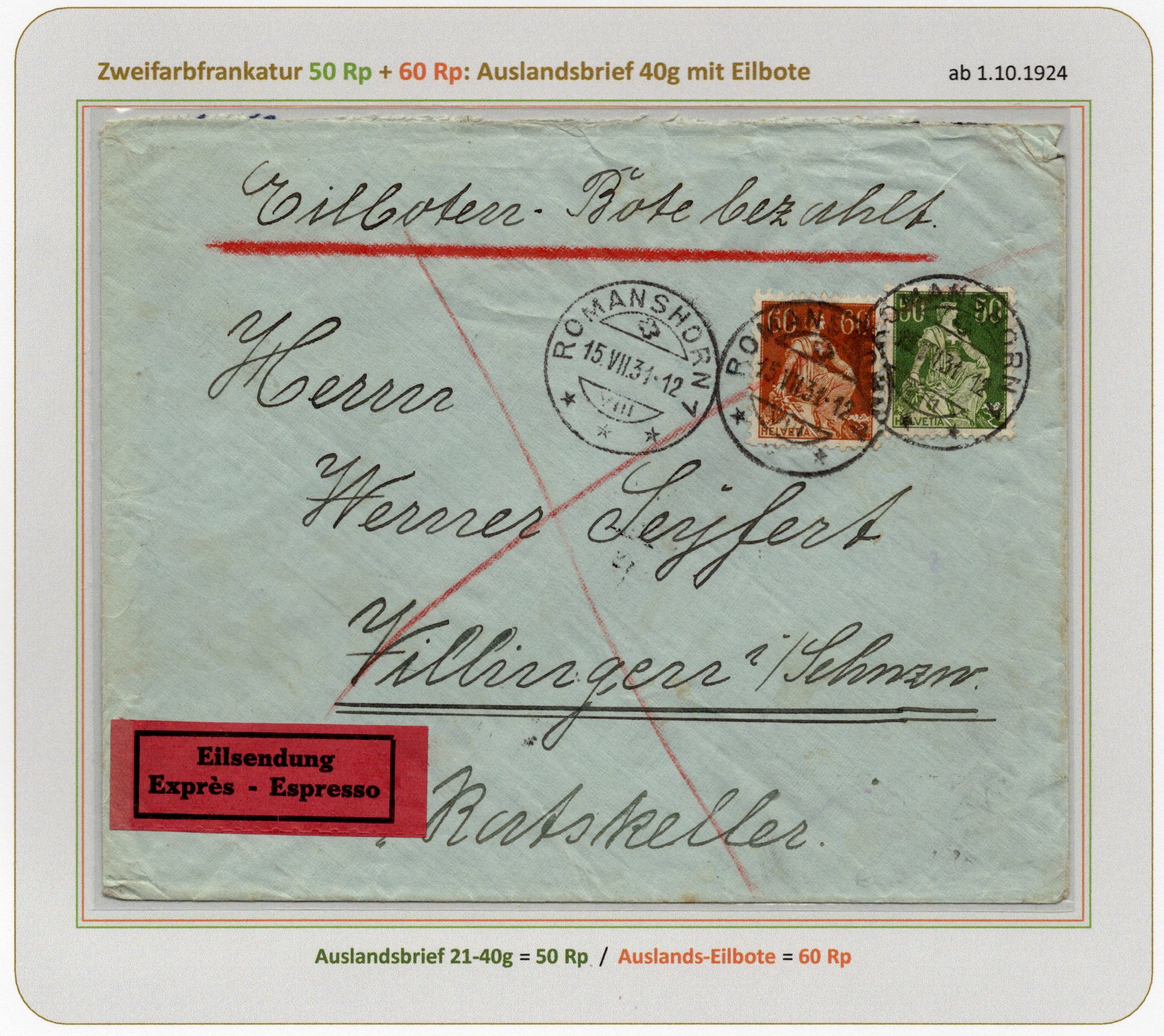 R-AusBf 40g Wert 600-900 Fr DIFA Eilbote |