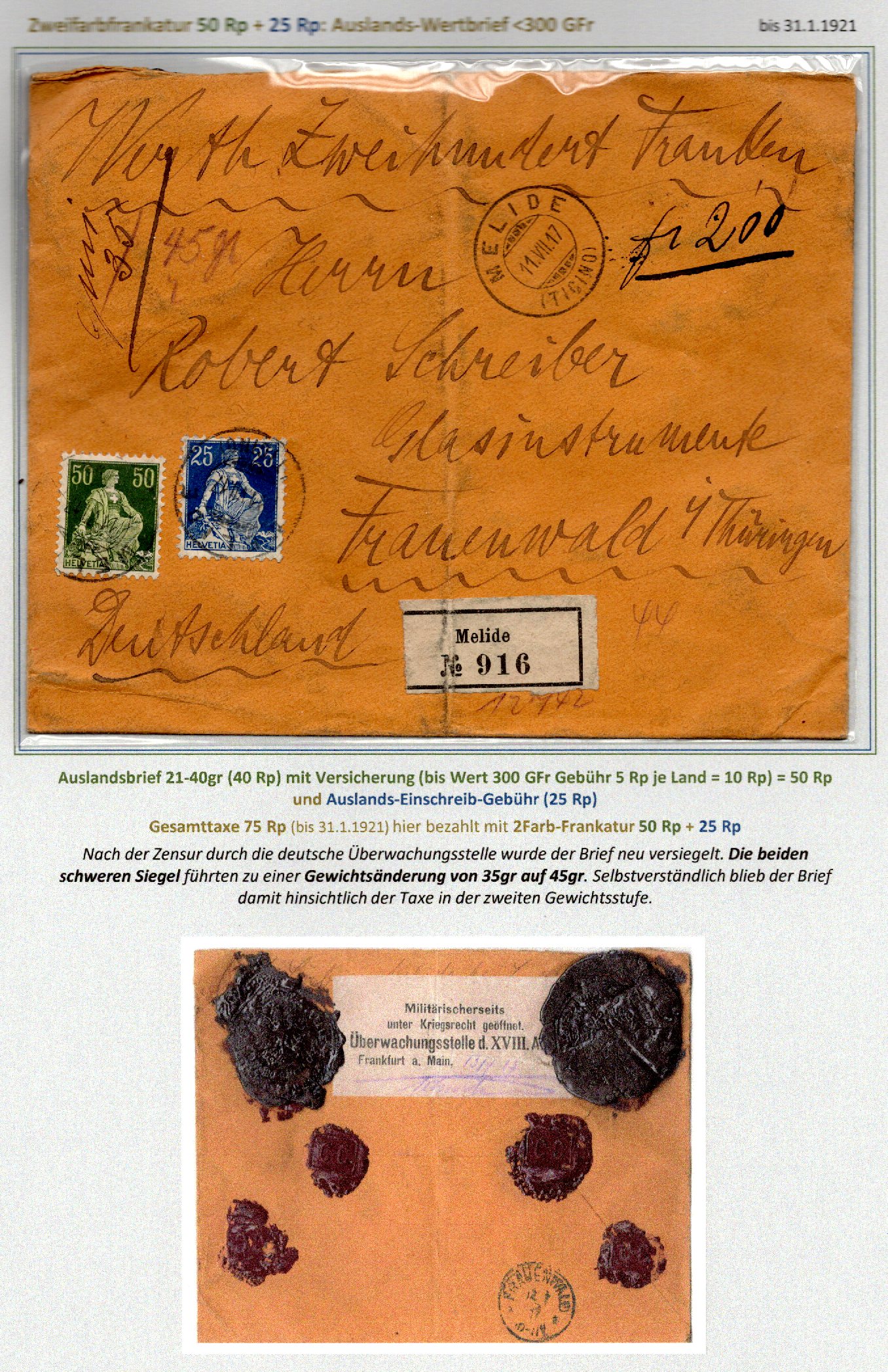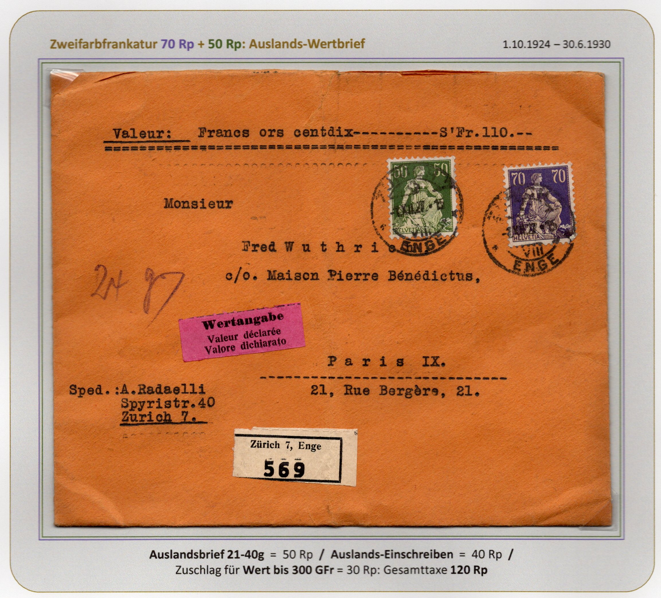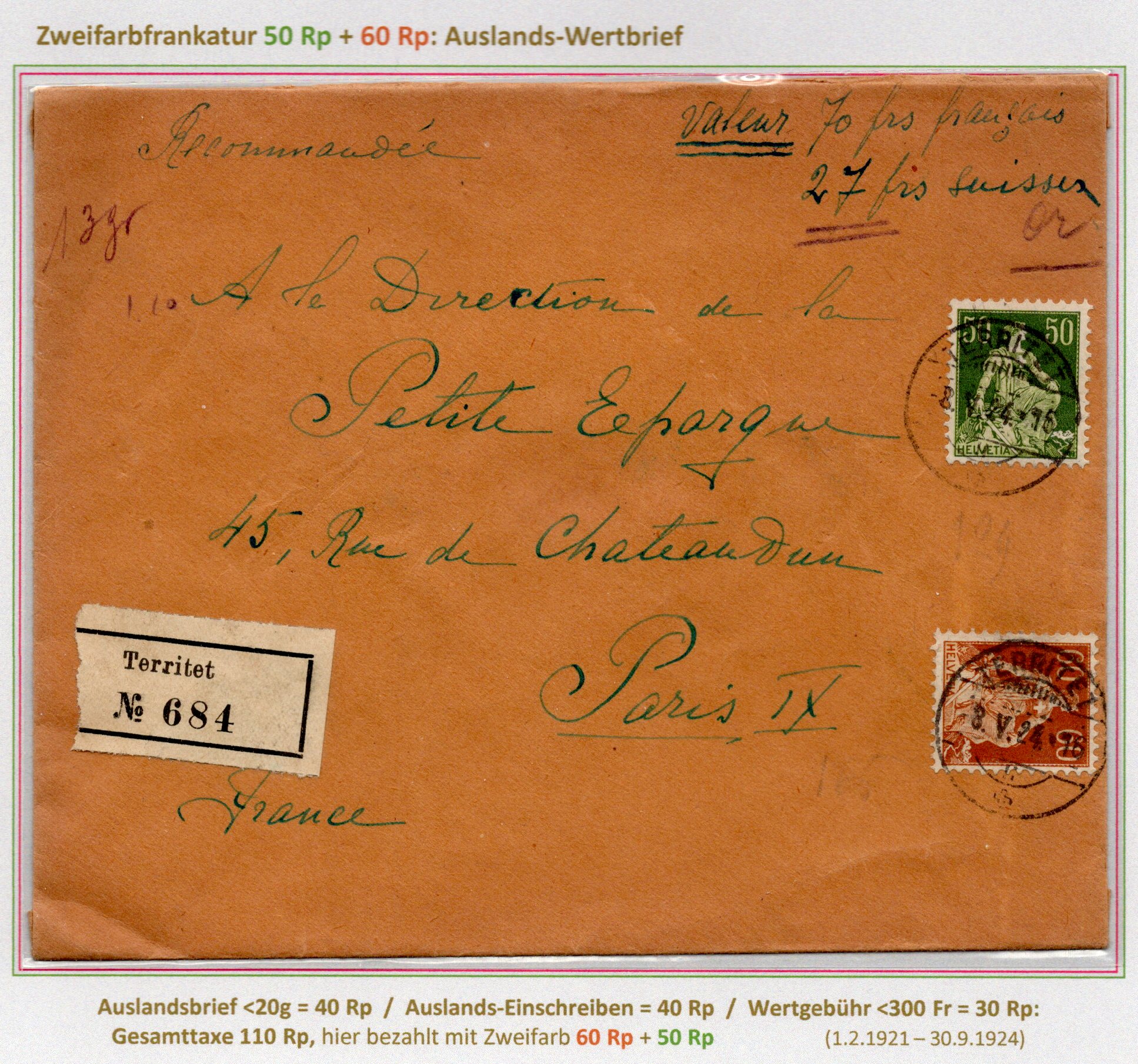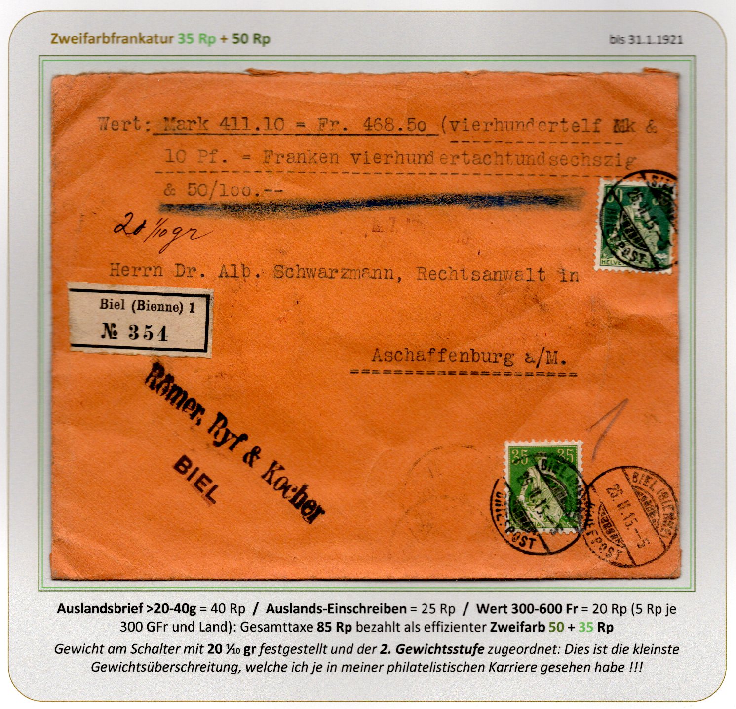 R-AusBf 40g Wert 600-900 Fr DIFA Eilbote |